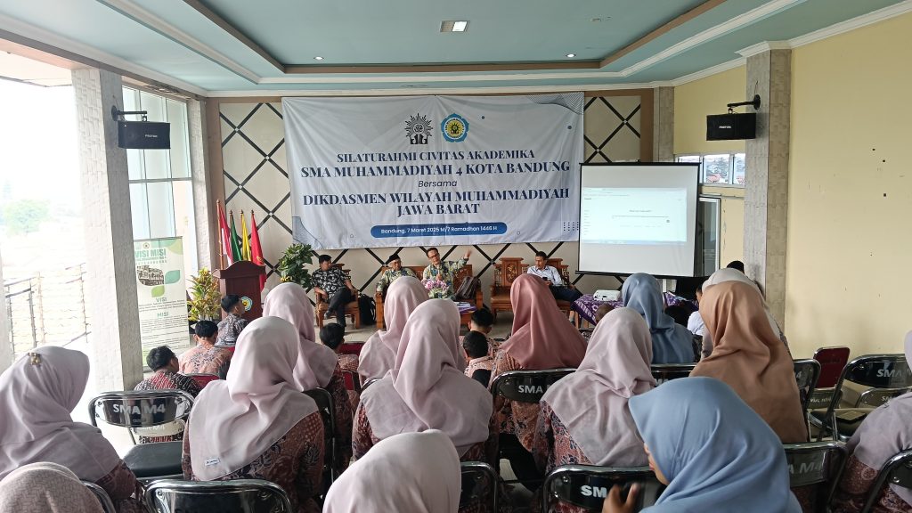 Bandung, Media M4 — SMA Muhammadiyah 4 Kota Bandung melaksanakan silaturahmi bersama Dikdasmen Pimpinan Wilayah Muhammadiyah Jawa Barat pada 7 Maret 2025/7 Ramadhan 1446 H di ruang Auditorium SMA Muhammadiyah 4 Kota Bandung.